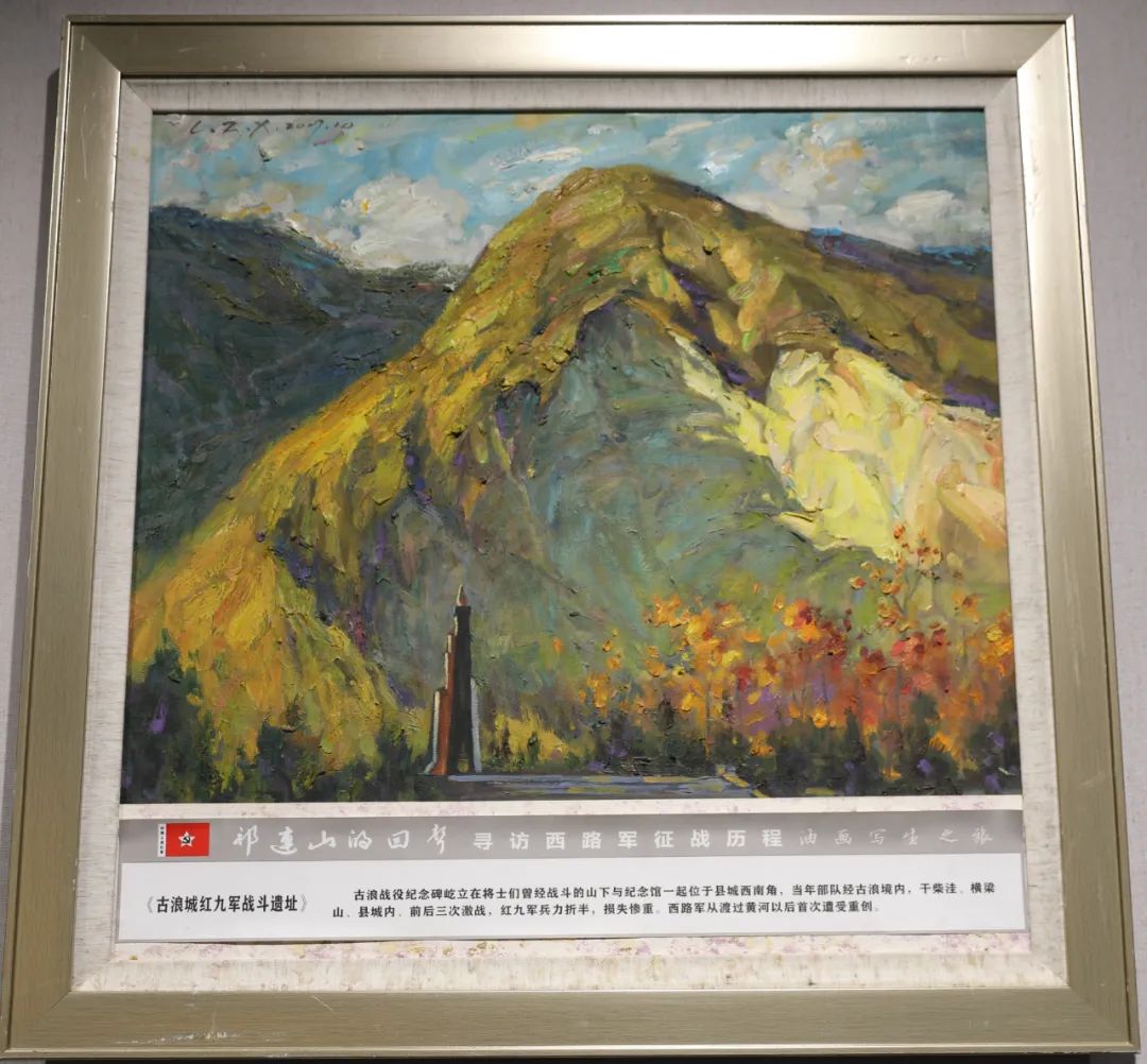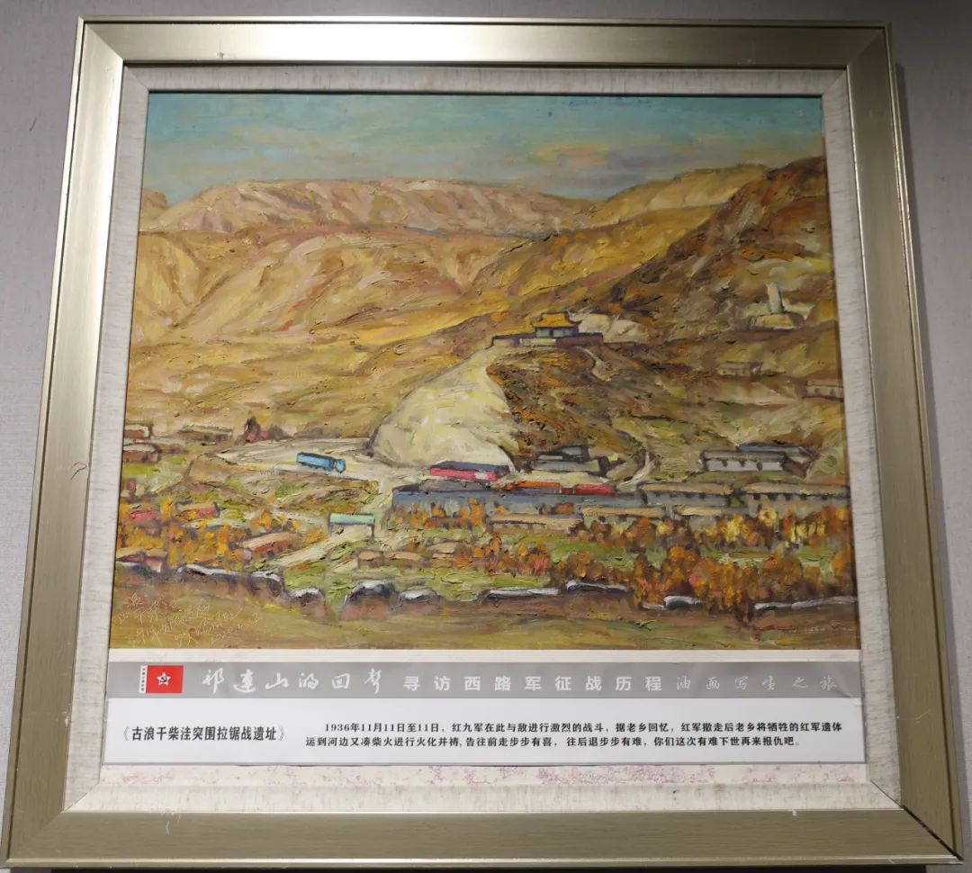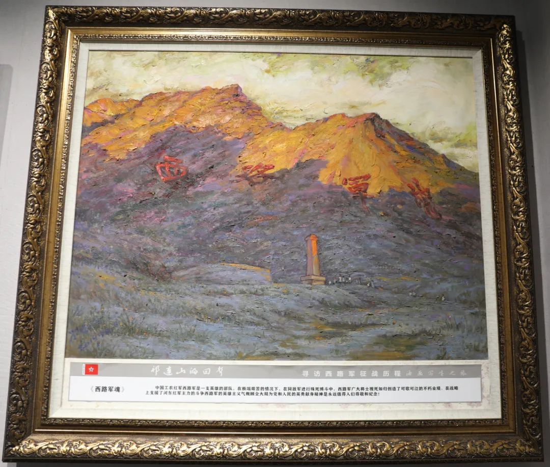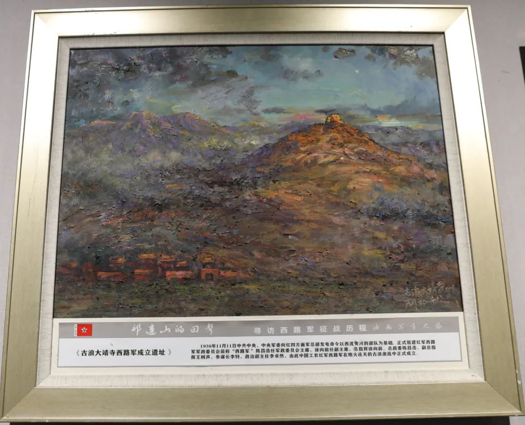 《祁连山的回声--寻访中国工农红军西路军征战历程油画写生作品展》,是由全国自驾重走长征路旅行写生第一人、西南大学中国共产党革命精神与红色资源研究中心特邀研究员刘增宪在寻访红西路军征战历程中所作的油画作品,共72幅。展览主要展示了红四方面军总部率30军、9军和5军从靖远虎豹口渡河以来,在古浪大靖组建西路军,先后在古浪、凉州、永昌、高台、临泽、肃南等地浴血奋战、艰苦卓绝的悲壮历程,以及党中央代表在星星峡迎接西行支队、最终艰苦跋涉、突出重围、抵达新疆,终于回到党的怀抱的光辉历史。