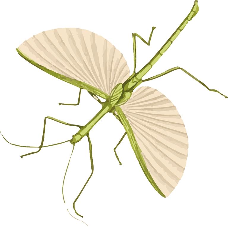 人们熟悉的竹节虫目昆虫,俗名竹节虫、干柴棒或叶子虫。竹节虫白天通常安静地栖息于树枝上,晚上才出来活动,四处寻找美味,植物叶片是它们最喜爱的食物,所以竹节虫是真正的素食者。最早的竹节虫化石记录可以追溯到二叠纪(距今2.99亿~2.54亿年前)。