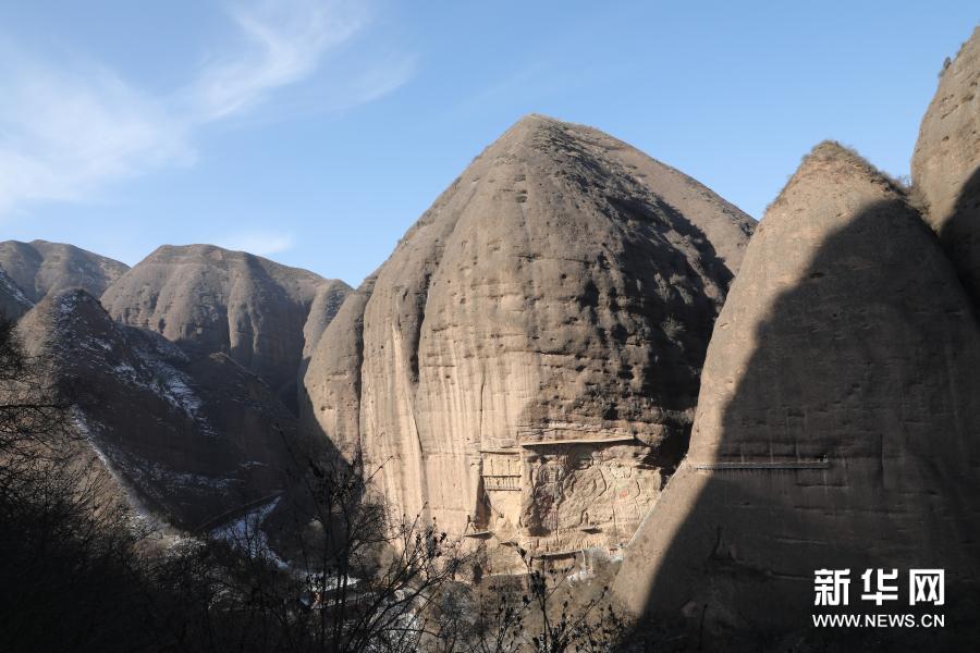 这是12月24日拍摄的水帘洞石窟群一景。水帘洞石窟群位于甘肃省天水市武山县县城东北25公里处的鲁班峡谷中,以高达42.3米的摩崖浮雕造像而著名,始建于十六国后秦时期,由水帘洞、拉梢寺、千佛洞、显圣寺构成,还保存有北魏以来的精美壁画和彩塑。新华社记者 张智敏 摄
