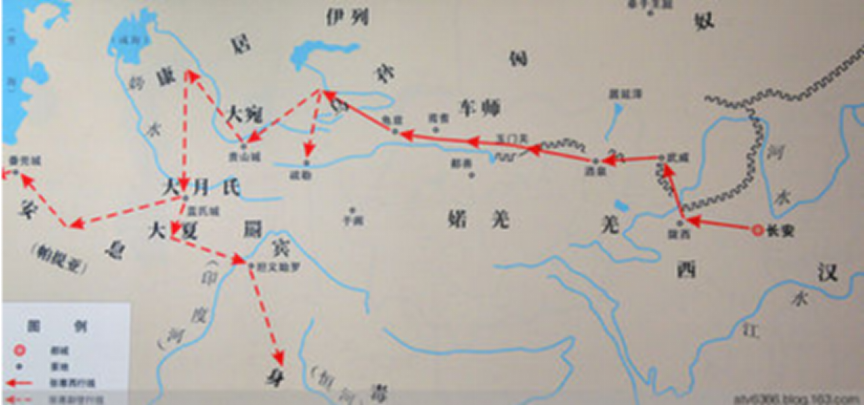 张骞的“凿空”之功,便造就了后世闻名的“丝绸之路”。它把西汉同中亚许多国家联系起来,促进了它们之间的政治、经济、军事和文化的交流。同时,也造就了这魅力无限的“河西走廊”。