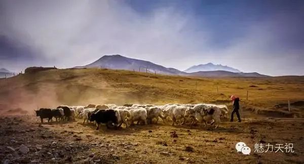 跟着牧羊人下山,晚霞,夕阳,还有牛羊过处,轻薄尘土飞扬。