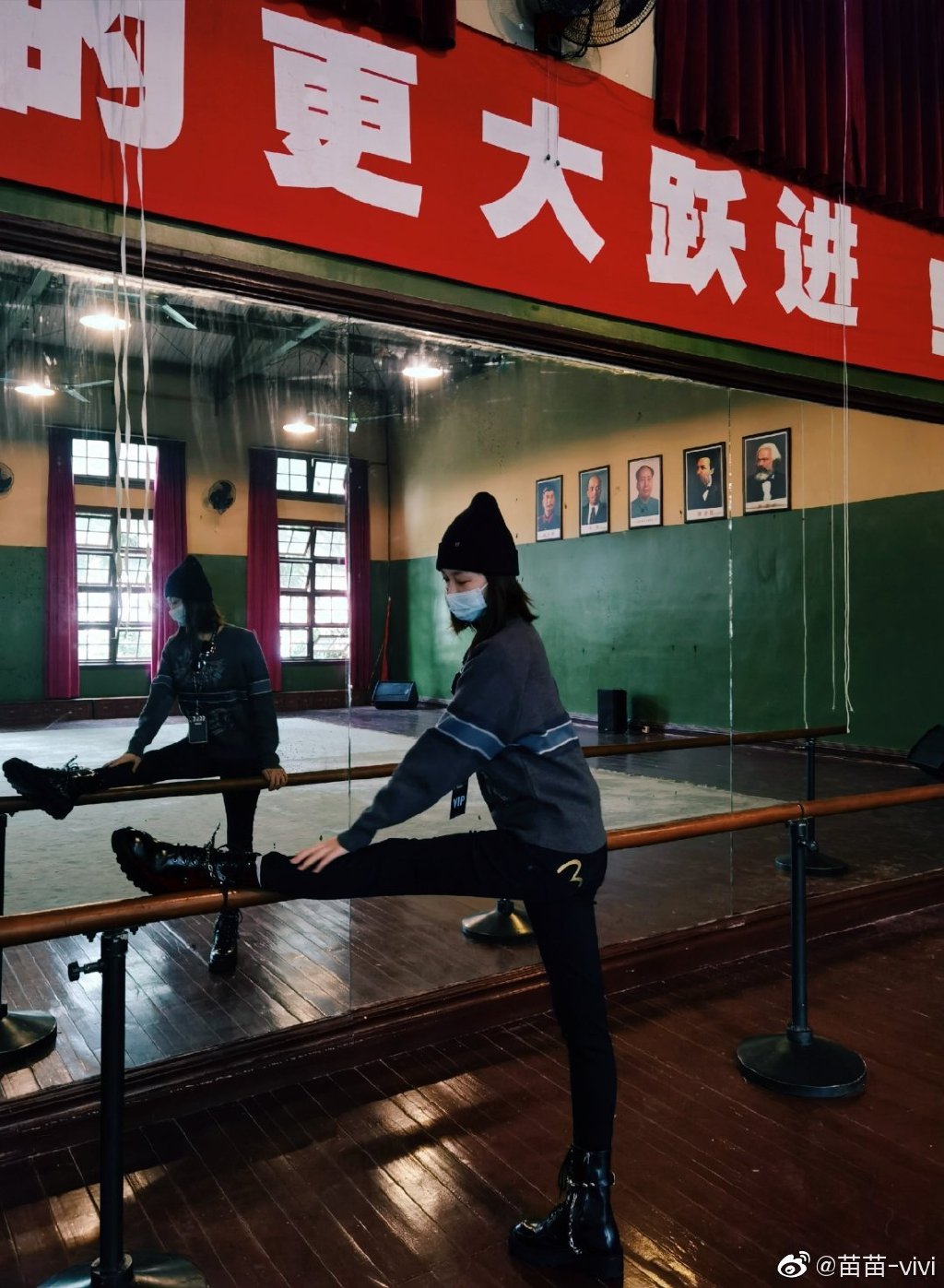 新京报讯 1月21日,演员苗苗在社交媒体晒出一组她和老公郑恺一同回到电影《芳华》拍摄地的组图。除了片中出现的排练厅、游泳池、文工团大院门口,苗苗还和郑恺“登上舞台”,重演片中舞蹈动作。