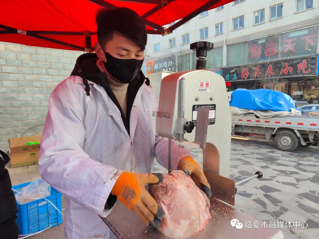 临夏市清源清真肉制品有限责任公司营销部经理 包智林:在春节来临之际,为了保障物资供应和物价。甘肃清河源根据粮食局、发改委、物资储备局的相关文件要求和精神。在临夏市四个点投放储备肉。羊肉每斤34元,牛肉每斤30元,我们的投放量是250吨。