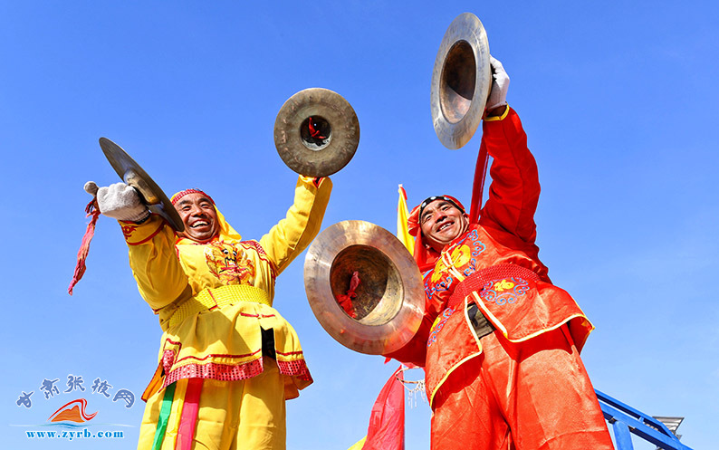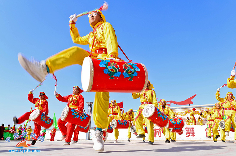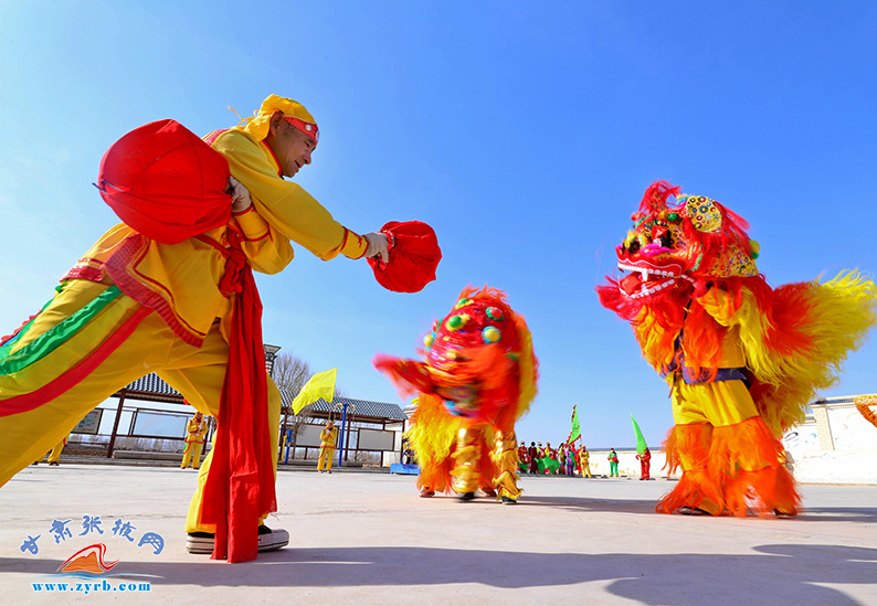 2月24日,高台县骆驼城镇新民村村民自发组织的社火表演队在文化广场上表演盛世龙腾、狮舞、太平鼓、划旱船、秧歌等传统形式新编社火,传递浓浓的乡情乡韵,表达对幸福美好生活的祈盼和追求。