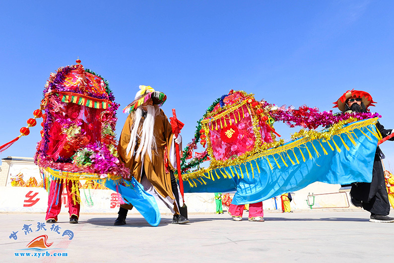 高台县骆驼城镇新民村社火队表演《盛世龙腾》,欢欢喜喜迎接元宵节。