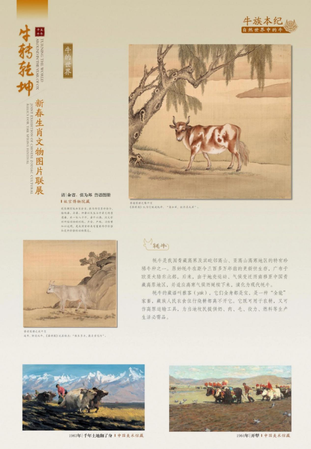 “六畜之首”的牛,与我中华族群相伴相守数千年来,凝结了憨厚、忠诚、坚韧、勇悍、悲悯、尽命的精神形象。无论自然、人文,抑或情感、艺术,关于牛的知识、信息绵延不绝,永世流传。
