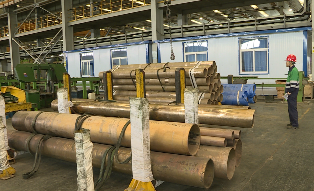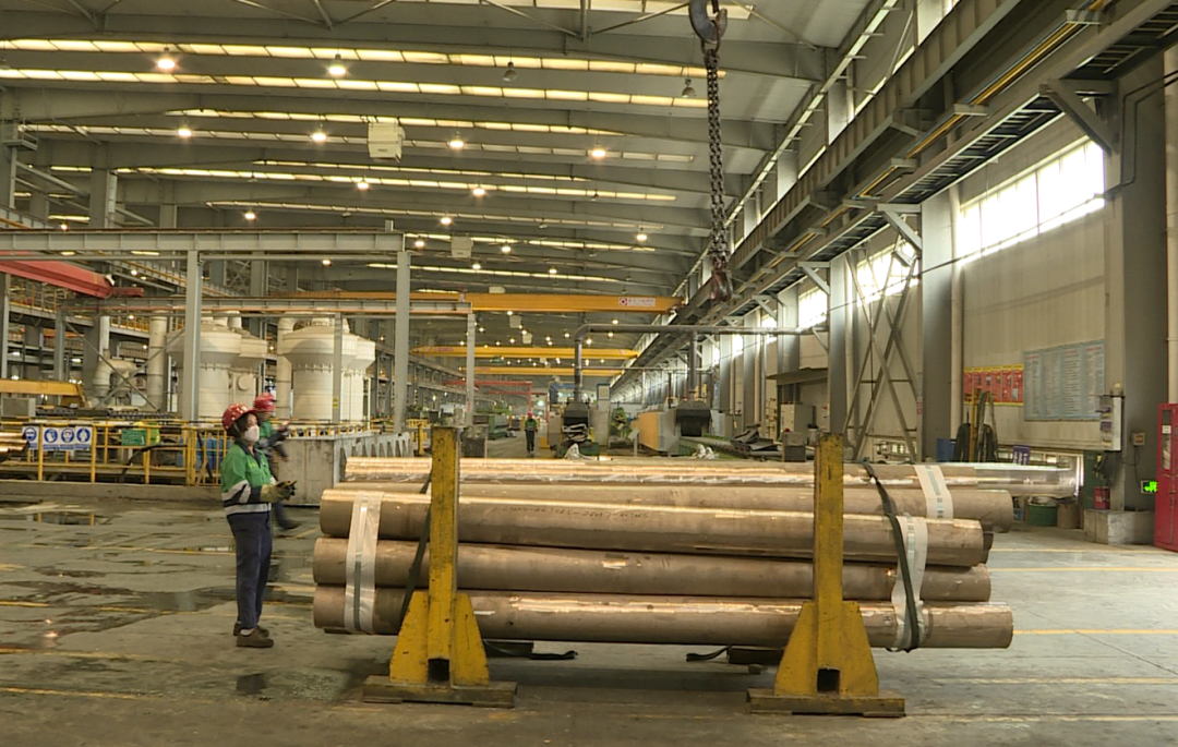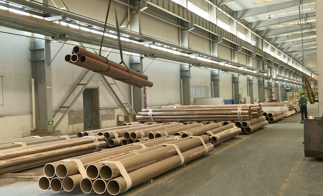 我现在是在金川集团精密铜材有限公司铜管事业部,在我手边的是历时四个月成功产出的第一批待出口白铜合金管材,这种直径为419毫米,厚度为9毫米的船舶用超大超厚铜镍合金管材,是目前国际市场上口径最大、壁厚最厚的无缝铜镍合金管材。