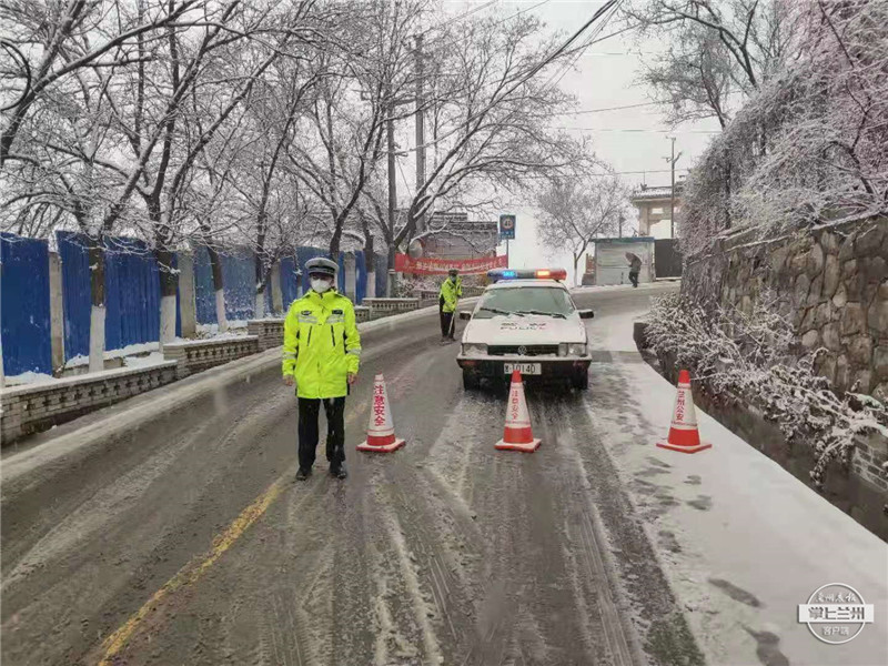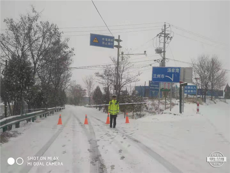 3月19日,兰州市公安局交警支队城关大队辖区伏直公路雪势渐大,积雪较厚,不具备通行条件,大队在检查站门口实行管制,对上山车辆进行劝返。伏直公路北线因积雪太厚也已经实行交通管制。