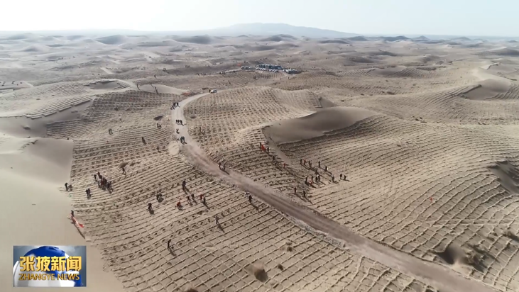 近年来,临泽县通过生物治沙、工程治沙相结合的方式,持续开展防风治沙,筑牢生态安全屏障,目前已在境内39万亩的沙漠上种植梭梭、灌木林23万亩。