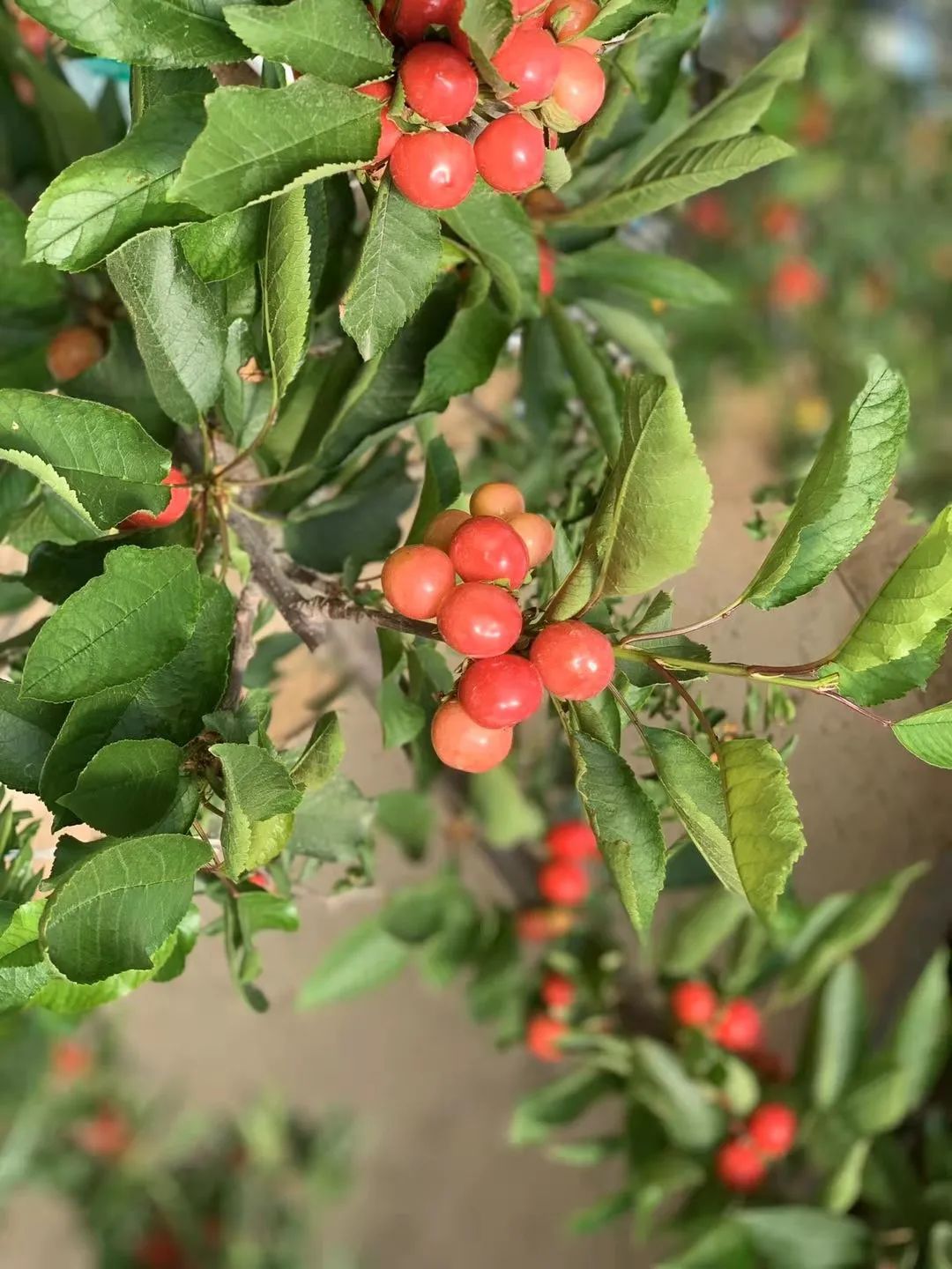 为花结实自殊常,摘下盘中颗颗香。味重不容轻众口,独于寝庙荐先尝。红旗谷现代农业示范园内樱桃逐渐熟了。樱桃成熟时颜色鲜红,玲珑剔透,味美形娇,营养丰富,又有“含桃”的别称。