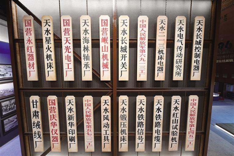 厂牌墙上,“国营永红器材厂”“天水星火机床厂”“国营天光电工厂”“国营庆华仪器厂”“甘肃绒线厂”……一个个熟悉的工厂名称,默默地述说着天水火热的工业历史。
