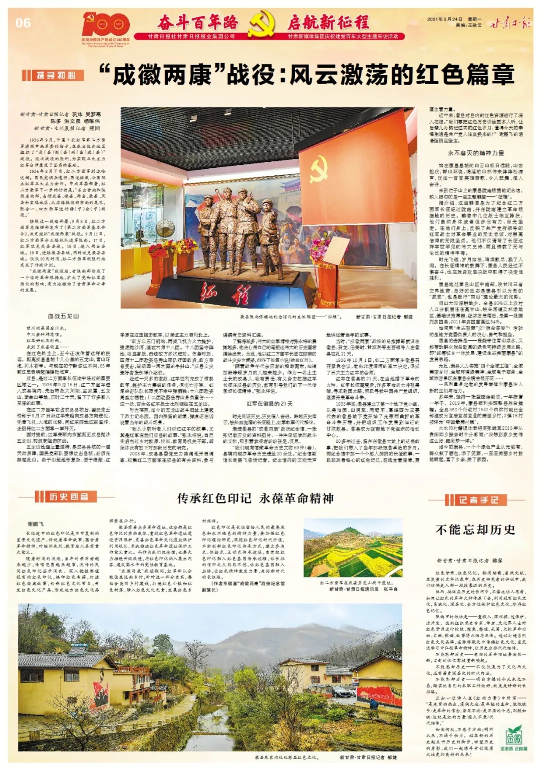 1936年9月,中国工农红军第二方面军遵照中央军委的指示,在我省陇南地区组织了“成(县)徽(县)两(当)康(县)”战役。这次战役的胜利,为实现三大主力红军会师奠定了坚实的基础。