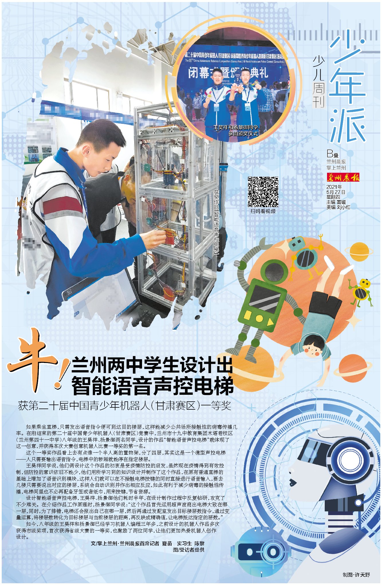 原标题:少年派丨牛!兰州两中学生设计出智能语音声控电梯