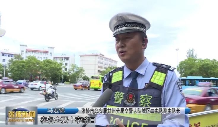 张掖市公安局甘州分局交警大队城区二中队副中队长 马宏锦:“在各主要十字路口开展交通安全宣传点,对电动车不带头盔、行人闯红灯、行人翻越护栏的不文明行为,进行安全劝导,让我市广大的人民群众参与到创建全国文明城市的活动中来。”
