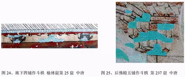 第172窟南壁与北壁的内容一样,同为净土寺院,所表现出的斗栱运用等级亦相同(图19)。