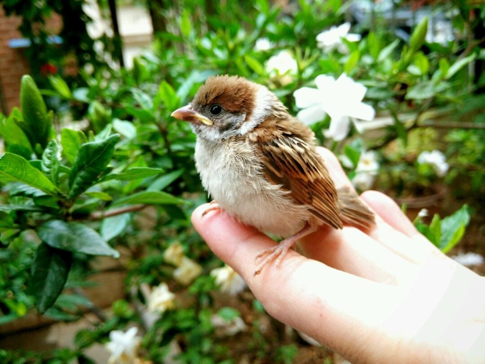 幼婴雏雀站不起来,只能摆动与自己身躯不成比例的大脑袋发出嘤嘤唧唧叫声。所以,对幼婴雏雀的哺育要特别操心。