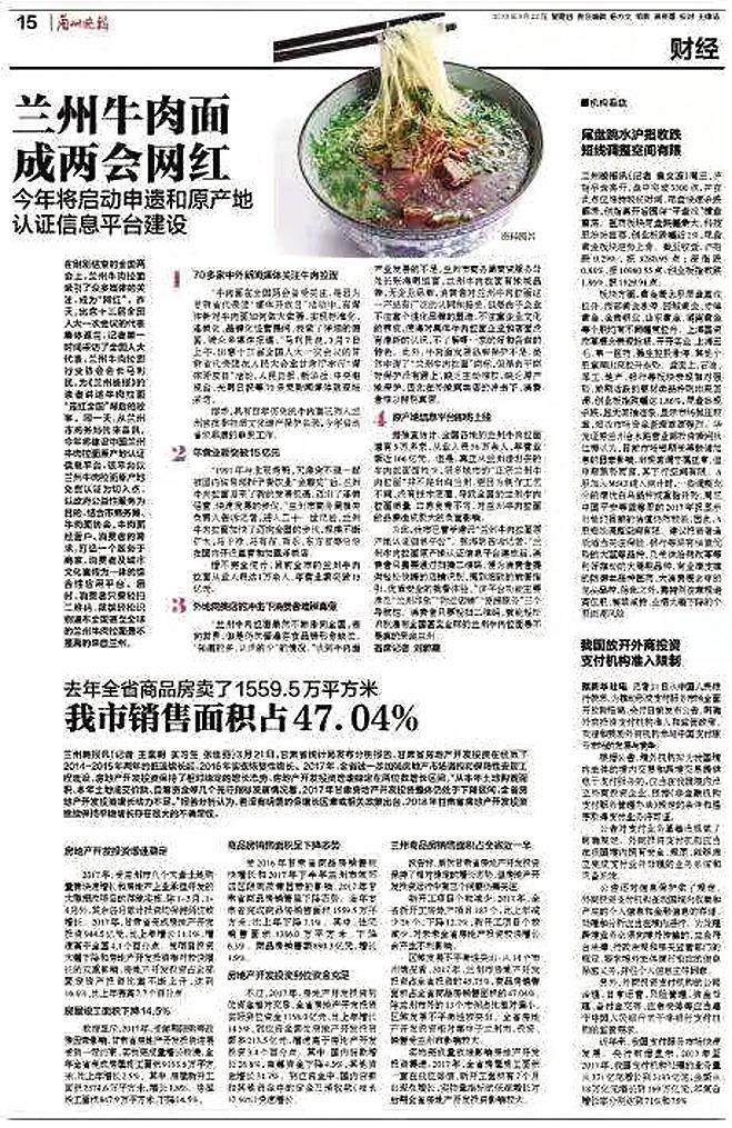 在2018年的全国两会上,兰州牛肉面吸引了众多媒体的关注,成为“网红”。在两会期间举行的甘肃省代表团“媒体开放日”活动中,人民日报、新华社、中央电视台、光明日报等70多家新闻媒体到现场采访。有媒体针对牛肉面如何做大做强,实现标准化、连锁化、品牌化经营提问,全国人大代表、兰州牛肉拉面行业协会会长马利民做了详细的回答,并表示,具有百年历史的兰州牛肉面已列入兰州首批非遗保护名录和甘肃省第二批非遗保护名录,按照逐级申报的原则,将适时申报国家级非遗。