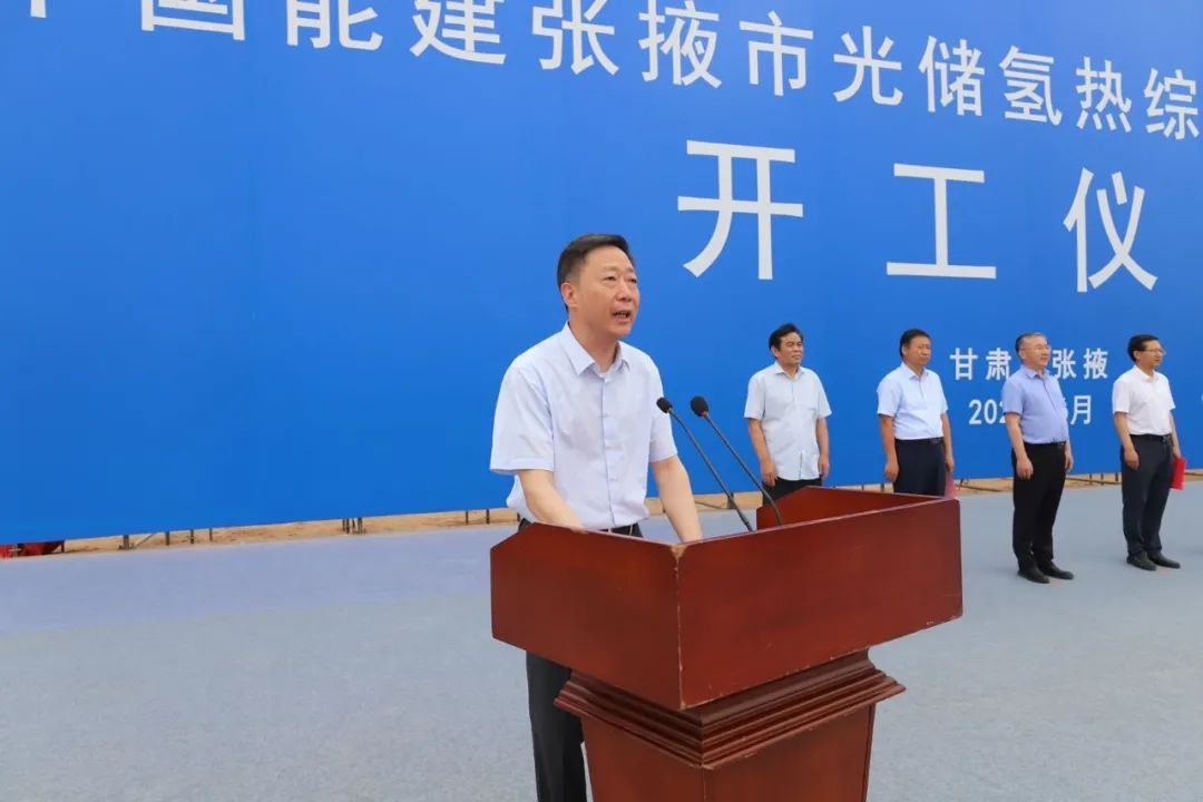 6月22日,中国能源建设集团张掖市光储氢热产业化示范项目在张掖国家级经济技术开发区开工。市委书记杨维俊宣布开工。中国能源建设集团有限公司监事会主席和建生致辞。市领导张健、王海峰、成广平、于永梅、葛永宏、杨成林及中能建中国电力工程顾问集团有限公司党委常委、总会计师郑良杰,中能建集团西北建投公司党委副书记、总经理黄宁强,中能建集团甘肃省电力设计院有限公司党委书记、董事长魏刚,中能建葛洲坝集团装备公司党委书记、董事长姚明辉等出席开工仪式。