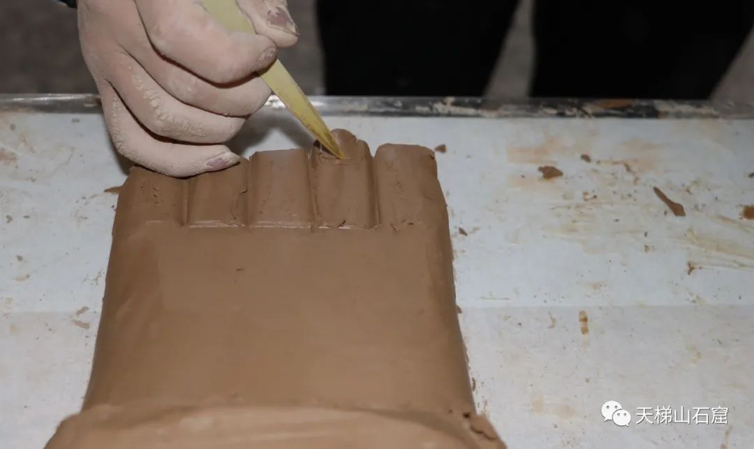 图片自上而下依次为:1、塑像修复师琢塑佛脚;2、制作好的塑像模型;3、依据最终筛选出的模型进行补泥塑形(敦煌研究院/供图)