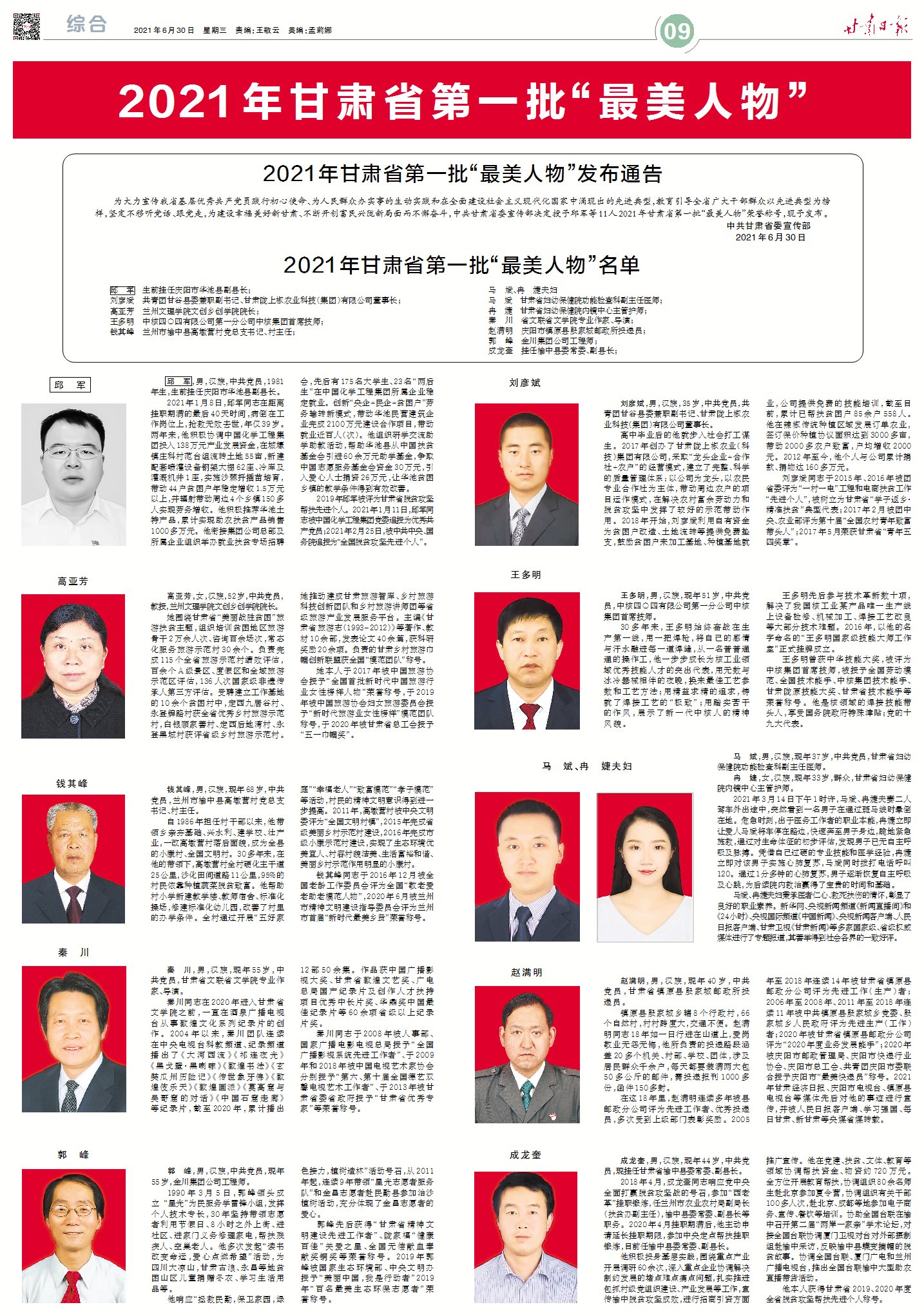 他本人获得甘肃省2019、2020年度全省脱贫攻坚帮扶先进个人称号。