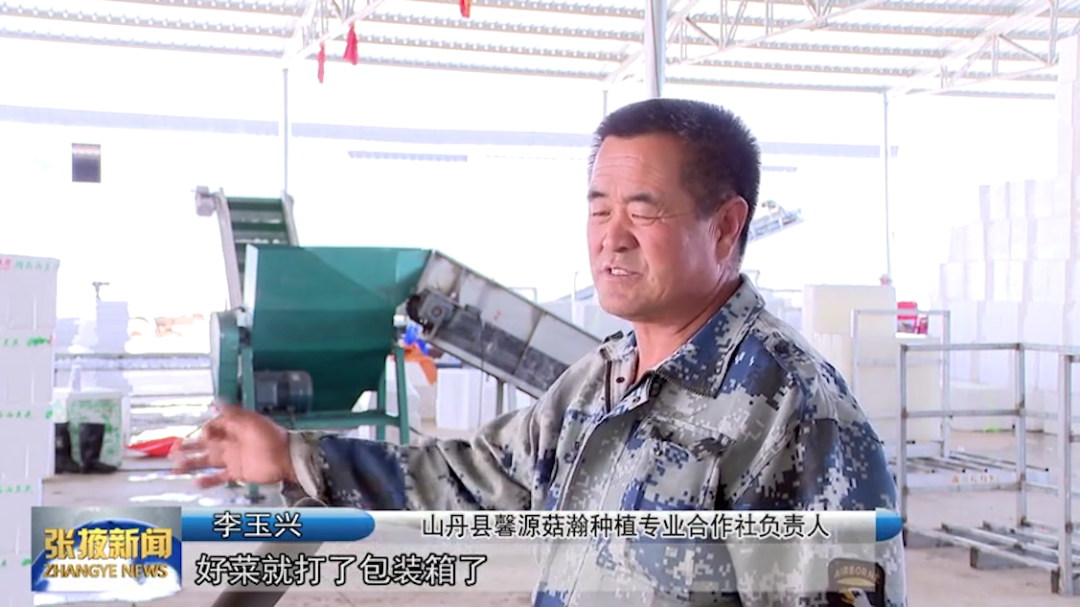 山丹县馨源菇瀚种植专业合作社负责人 李玉兴:“废菜就走了废菜的地方了,好菜就打了包装箱了,这是我们的运输带,车来了直接就上运输带,现打现装车,这个生产线相比以前就先进多了,分拣菜人也没有那么忙了。”