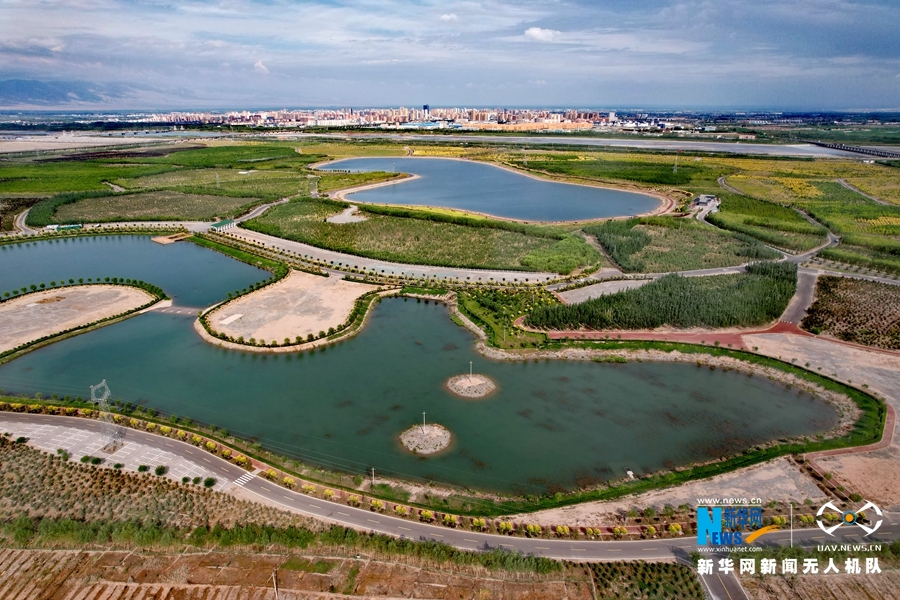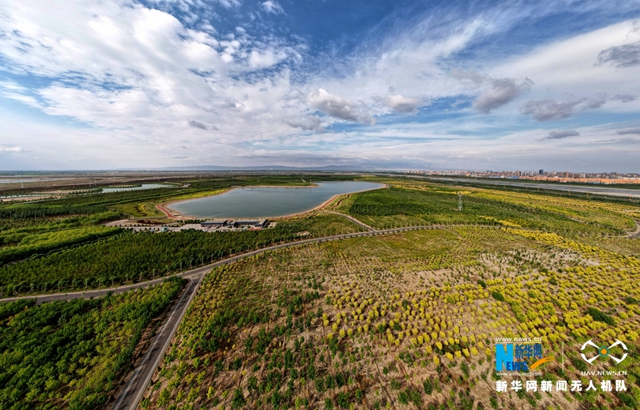 这是近日航拍的张掖城市森林公园风光 新华网发 (郑旺 摄)