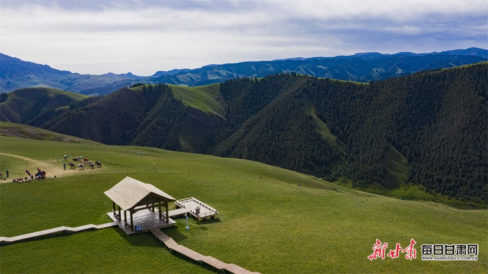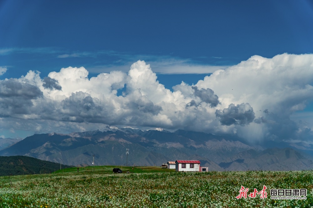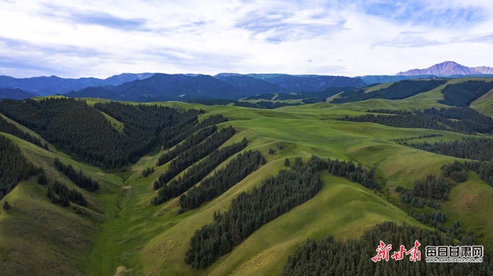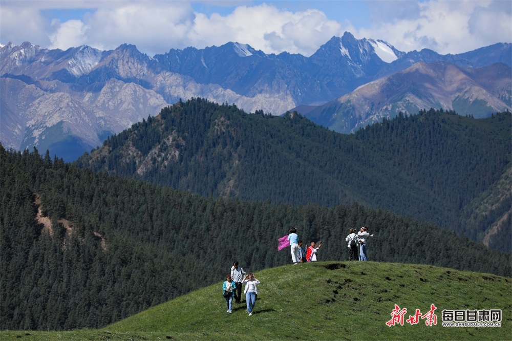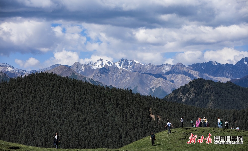 7月27日,张掖市肃南县裕固族康乐草原,雨后空气清新,无边的草原环绕着油画般的松林,林间山花点缀,与远处的雪山冰川融为一体,组成了一幅美丽壮观的自然景观,置身其中让人心旷神怡。