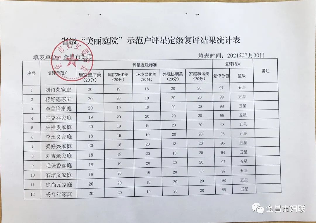 7月21日至23日,由市妇联成立的“美丽庭院”评审组采取进村入户实地查看和综合评定的方式分别对永昌县新城子镇、红山窑镇、焦家庄镇、城关镇、东寨镇、六坝镇、南坝乡、河西堡镇、水源镇、朱王堡镇和金川区双湾镇、宁远堡镇等12个乡镇的30户省级“美丽庭院”示范户进行评星定级。