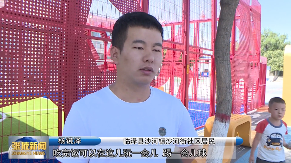 临泽县沙河镇沙河街社区居民大二学生 杨镜泽:“有这个之后,吃完饭可以在这儿玩一会儿,踢一会儿,比以前乐趣多了一点。”