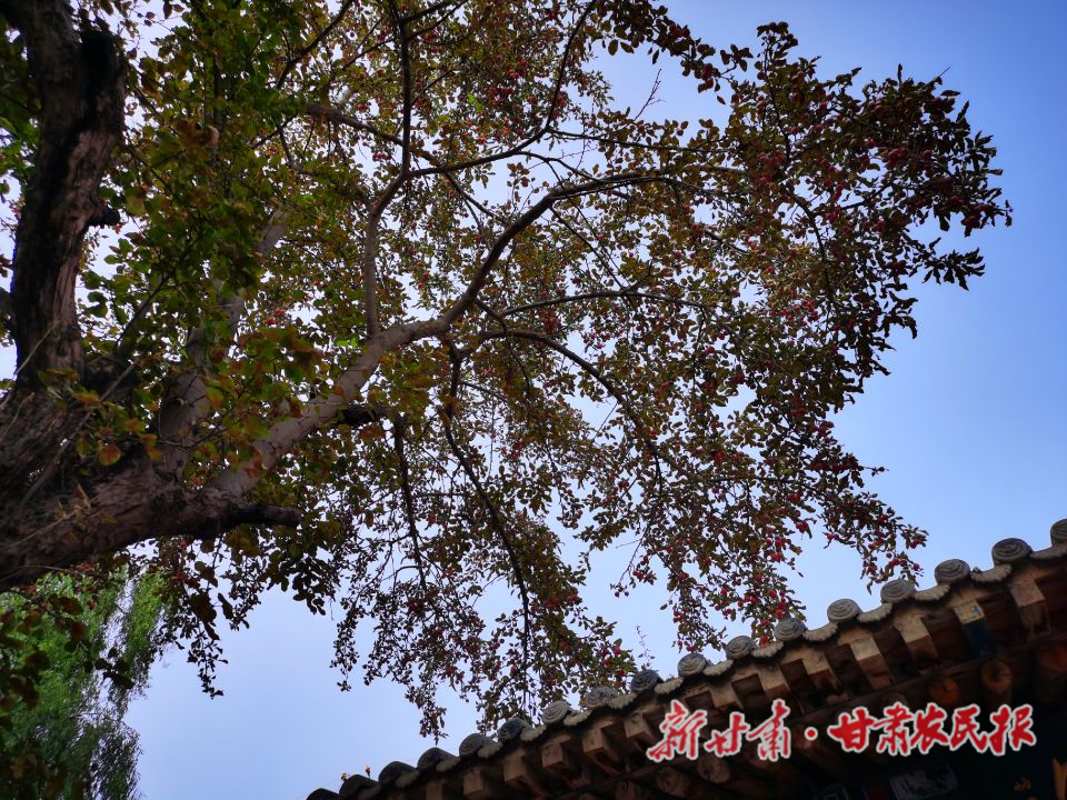 唐槐汉柏、文冠海棠,行走在金天观内,古木森森,凉意浸人。时有小巧嫣红的海棠果从枝头坠落,打破古观的幽静,让人惊喜。
