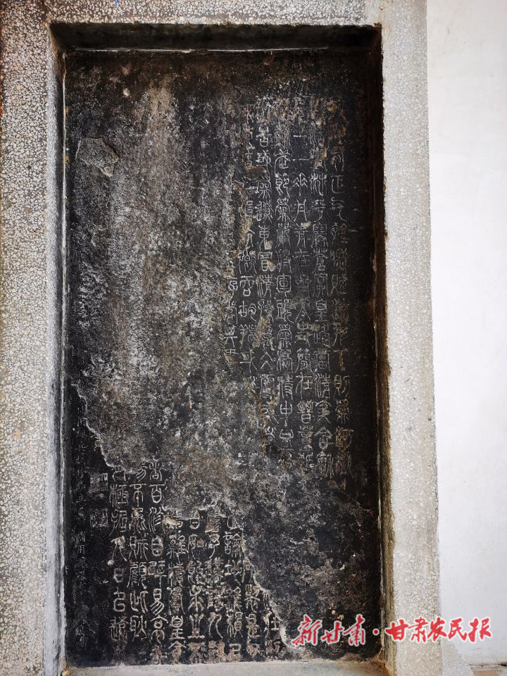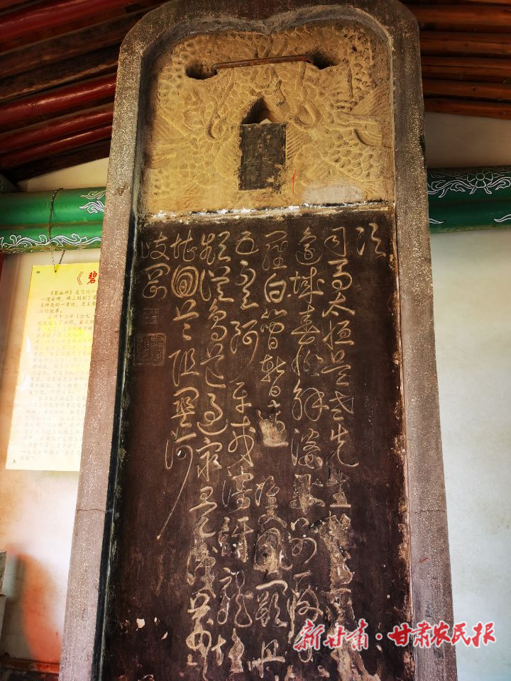 1976年,碧血碑被移入金天观。据《皋兰县志》记载,此碑成碑时间为明万历二十一年(1593年),高七尺、宽四尺,铭有证罔“肃藩翰墨”“磐石之宗”两印,上刻肃宪王朱绅尧狂草《次司马太恒吴老先生韵兼送之甘州》七律诗一首: