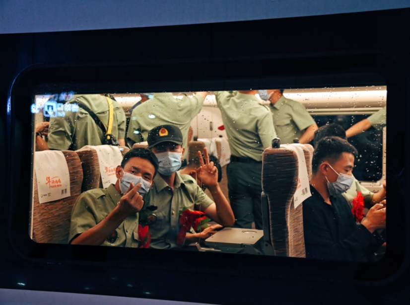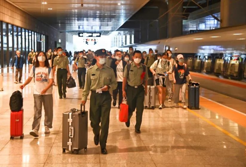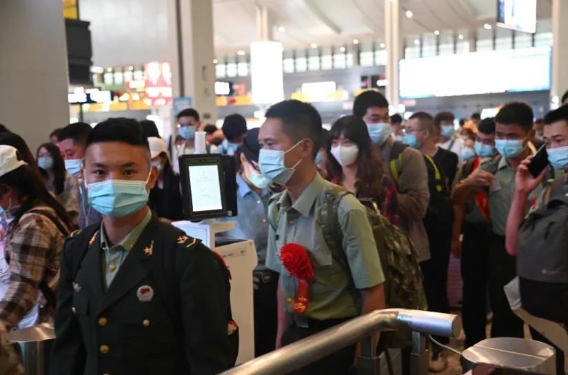 进入9月,2021年下半年铁路新老兵运输投送工作全面展开,人民子弟兵身披绶带,胸戴红花,成为铁路车站内一道靓丽的风景。