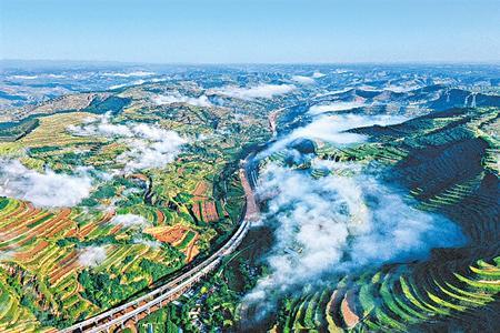 彭大高速崆峒区四十里铺段景色壮美。全长89.852公里的彭大高速全线贯通后,将实现与福银、青兰、平天等多条高速公路的互联互通,成为沿线群众的致富路。目前,该项目建设已进入冲刺阶段。
