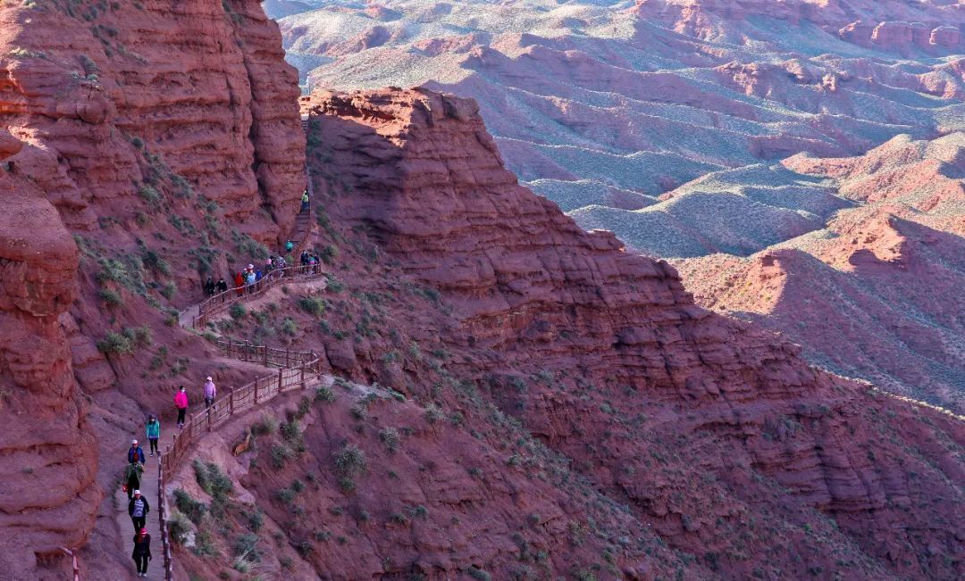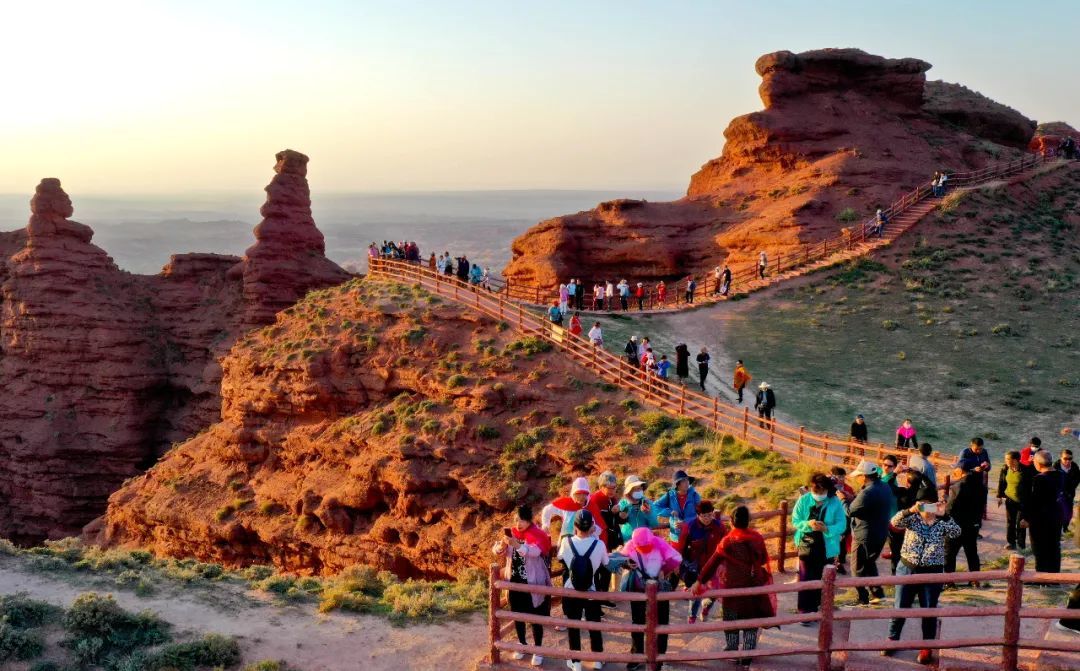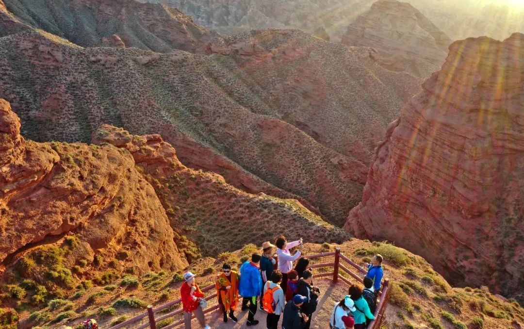 据悉,进入秋季甘肃针对反响较好的赏秋线路进行优化,开发“秋天的童话”“金秋赏胡杨林”“中国彩虹山”“世界艺术宝库”等多条“环西部火车游”新产品,开行多趟“省内游”和“跨省游”旅游专列,以“专列游”推动甘肃旅游产业走向快速复苏,开启游客探访丝路文化的开心之旅。(王将 冯乐德 摄)