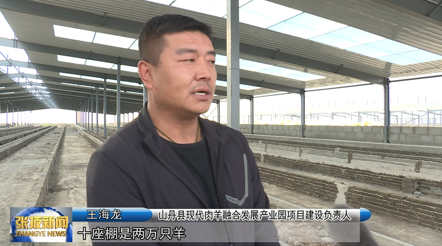 山丹县现代肉羊融合发展产业园项目建设负责人 王海龙:“每一间棚养两千只羊,十座棚是两万只羊,扩繁一万只羊,育肥是一万只羊,总共一期是四万只羊。”