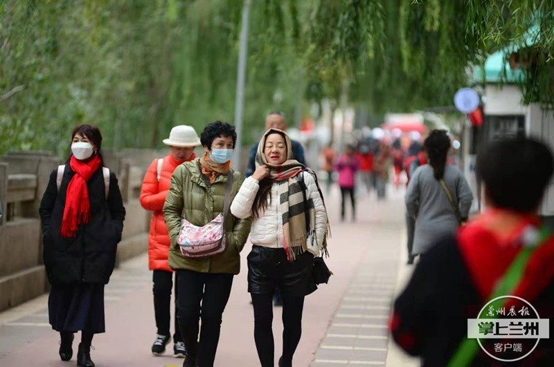 10月9日,冷空气来袭,兰州明显降温。气温不断下降,距离寒冷的冬季也越来越近了,人们外出时一定记得防寒保暖。掌上兰州·兰州晨报记者 裴强 摄