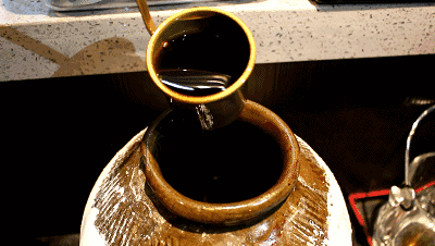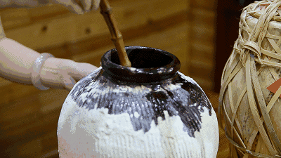 紧接着是后发酵。经过主发酵后,发酵趋缓弱,即可把酒醪移人后发酵罐。控制温度和室温在15~18℃,静止发酵20~30天,使酵母进一步发酵,并改善酒的风味。最后要压榨、澄清、消毒。后发酵结束后,把黄液体和酒槽分离开来,让酒液在低温下澄清2 ~ 3天,吸取上层清液,倒入锅中用文火烧至80-85℃并保持20-30分钟,达到杀菌的效果,也让酒体成分得到固定。灭菌后趁热用陶瓷缸存放,并严密包装,再储存。两年三年,甚至七年八年,经过时间的沉淀,黄酒才能变成诱人的琥珀色。