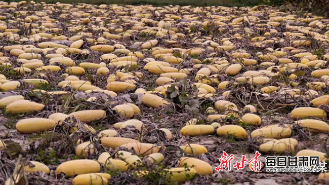 在种田乡西葫芦种植基地,一个个个头大、匀称、黄澄澄的西葫芦横七竖八地躺在田里,累累硕果,一片金黄,当地农户正在采摘,呈现出一派丰收的喜人景象。