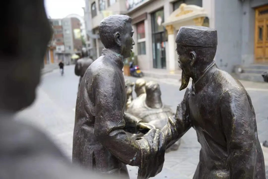 一组组美轮美奂的雕塑,鲜活地重现了河州老城的历史文化和地域风情,像一副画卷将临夏的今夕过往、城市的气息脉络徐徐展开。向游客展示悠闲的老城生活、繁华的商贾贸易,美景与艺术在这里交融汇合、兼容并蓄的人文历史。探索八坊十三巷的巷道吧,一“铜”回忆河州时光,“塑”说河州情长。(微游甘肃)