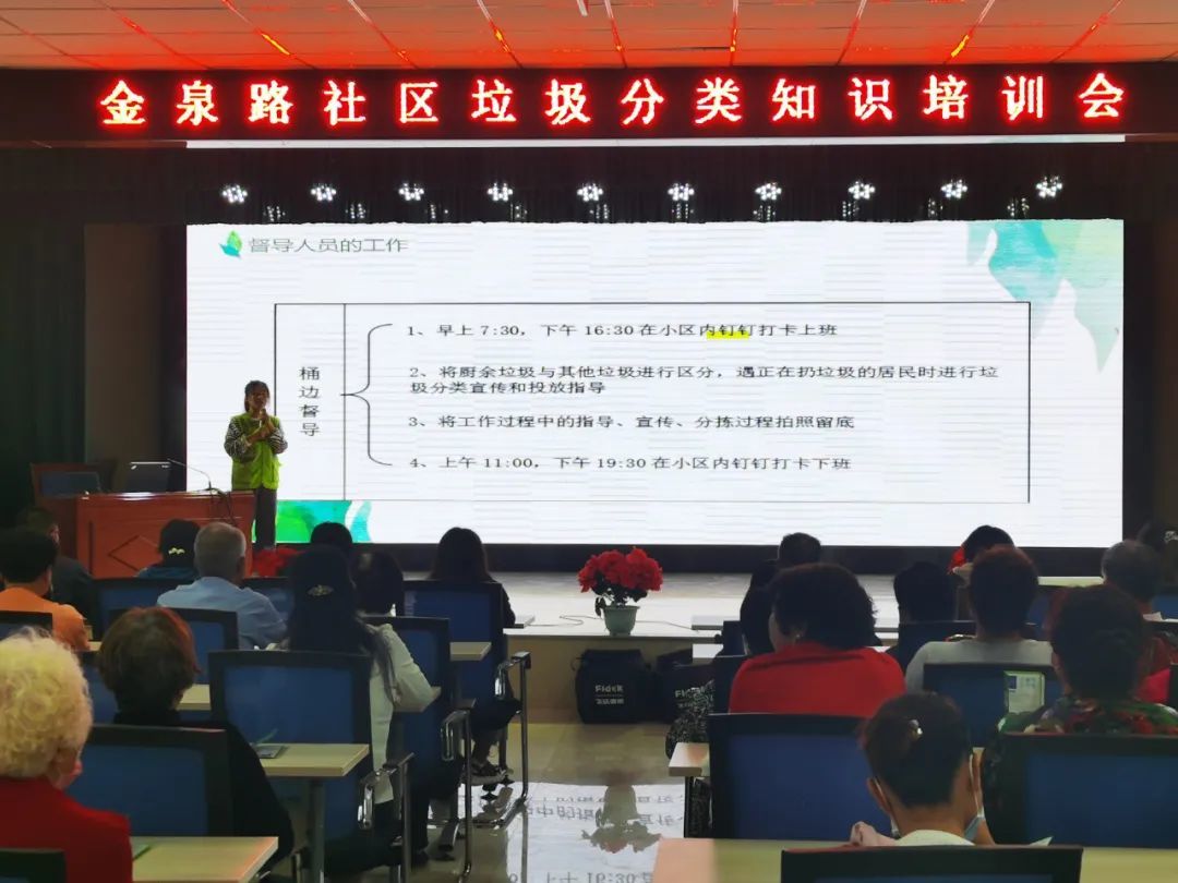自肃州区实施垃圾分类工作以来,金泉路社区按照生态文明建设的理念和要求,将生活垃圾分类与全区全域无垃圾专项治理行动结合,以生活垃圾减量化为核心,资源化、无害化处置为目标,按照“引领示范、多方宣传、积极推进”的思路,通过不断地引导宣传,配备智能化垃圾分类设施,实现小区垃圾分类全覆盖,以点带面,全面推进辖区生活垃圾分类工作。