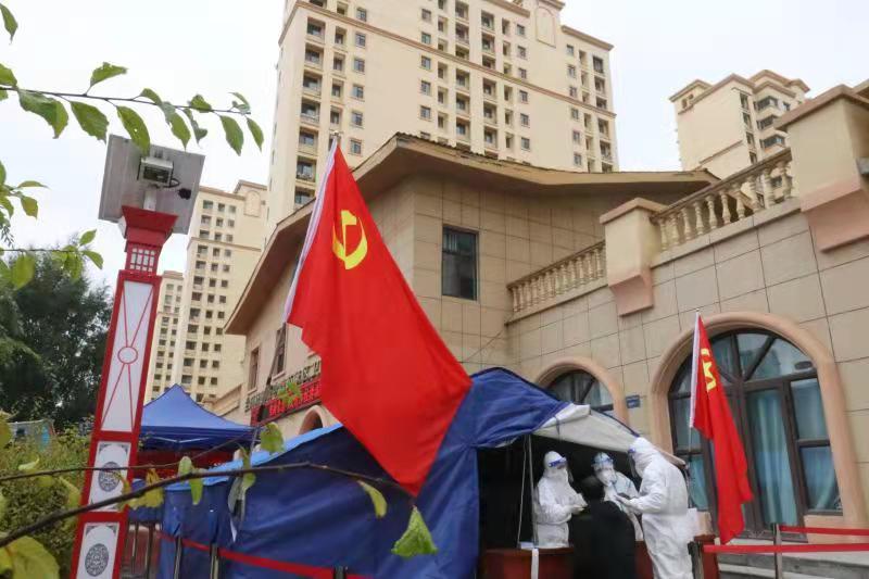 彩虹城、栖霞等4个中心社区“大工委”、18个社区“社工委”“大党委”高擎“先锋旗”,3173名党员迅速到社区集结报到,组建党员志愿服务队312个,亮身份、做表率、当先锋,积极投身核酸采样现场维护秩序等工作。