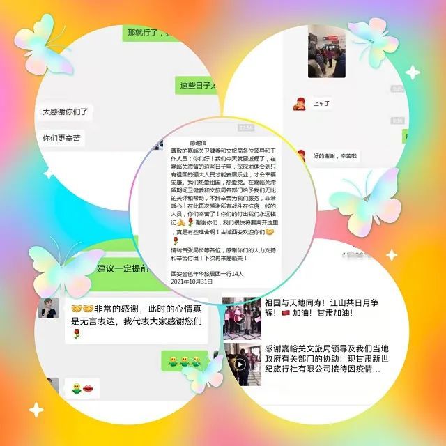 金色年华旅居团在感谢信中写到:在嘉峪关滞留期间,嘉峪关市卫健委和文旅局各部门给予我们无比的关怀和帮助,不辞辛苦为我们服务,非常暖心。在此,再次感谢所有战斗在抗疫一线的人员,你们辛苦啦!你们的付出我们会铭记于心,谢谢你们。我们很快将要离开这里,真是有些难舍。