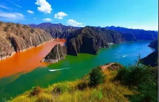 从甘肃炳灵丹霞地貌国家地质公园码头乘坐快艇顺流而下,眼前渐渐变得开阔起来,蓝天如洗,四望空阔,这就是著名的高峡平湖——刘家峡水库。