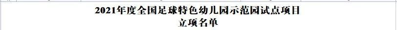 关于2021年度全国足球特色幼儿园示范园试点项目立项名单的公示