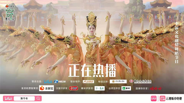 舞动山水之间,寄情华夏千年。由河南卫视与哔哩哔哩共同制作出品、余额宝冠名赞助的舞蹈新综艺节目《舞千年》,以中华上下五千年的历史时间线为轴,汇聚了包括中国歌剧舞剧院、中央芭蕾舞团、北京舞蹈学院、甘肃省歌舞剧院、洛阳歌舞剧院等国内13支顶尖舞蹈艺术团体,以舞蹈的形式讲述中国传统故事,勾勒华夏千年文明脉络,尽展中国传统舞蹈之美。
