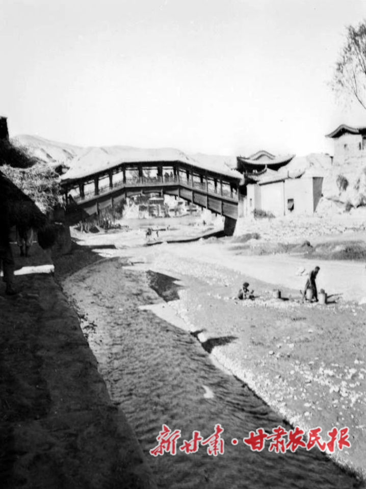 雷坛河从金天观东侧汇入黄河,而握桥,曾是越河的主要津梁。据《皋兰县志·桥津》记载:“卧(握)桥又名三公桥,在袖川门西二百步,当阿干河口(雷坛河也称阿干河)。架木横空,东西十余丈,其下无柱,高五丈。其上覆盖如屋,楹栏齐整,亦匠心之巧者。”