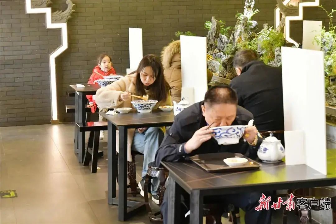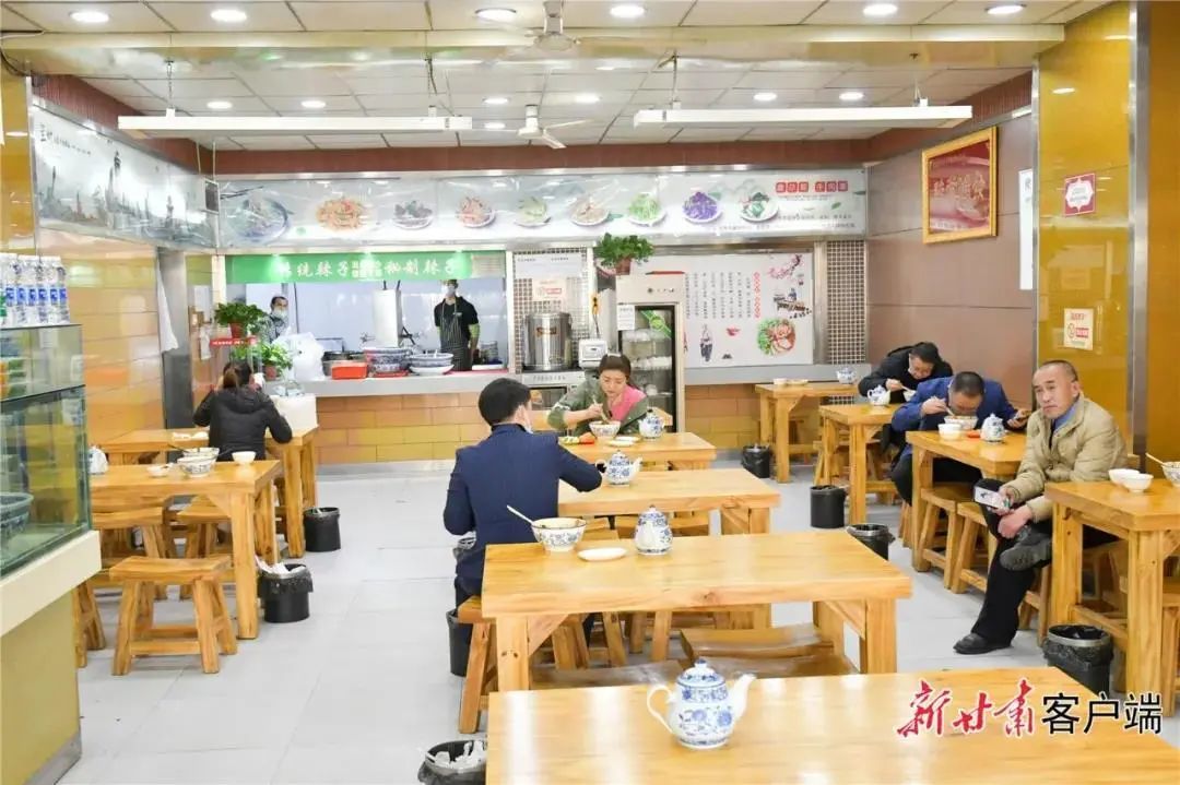 “清零”后,全市居民持绿码畅通通行,各餐馆也经过严格的消杀工作后,陆续恢复堂食。28日起,从凌晨5时的牛肉面馆到午时的火锅,生活气息扑面而来,兰州各餐厅门口人来人往,堂食的客人络绎不绝。