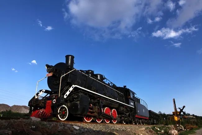 蒸汽机车、老采矿设备展示着