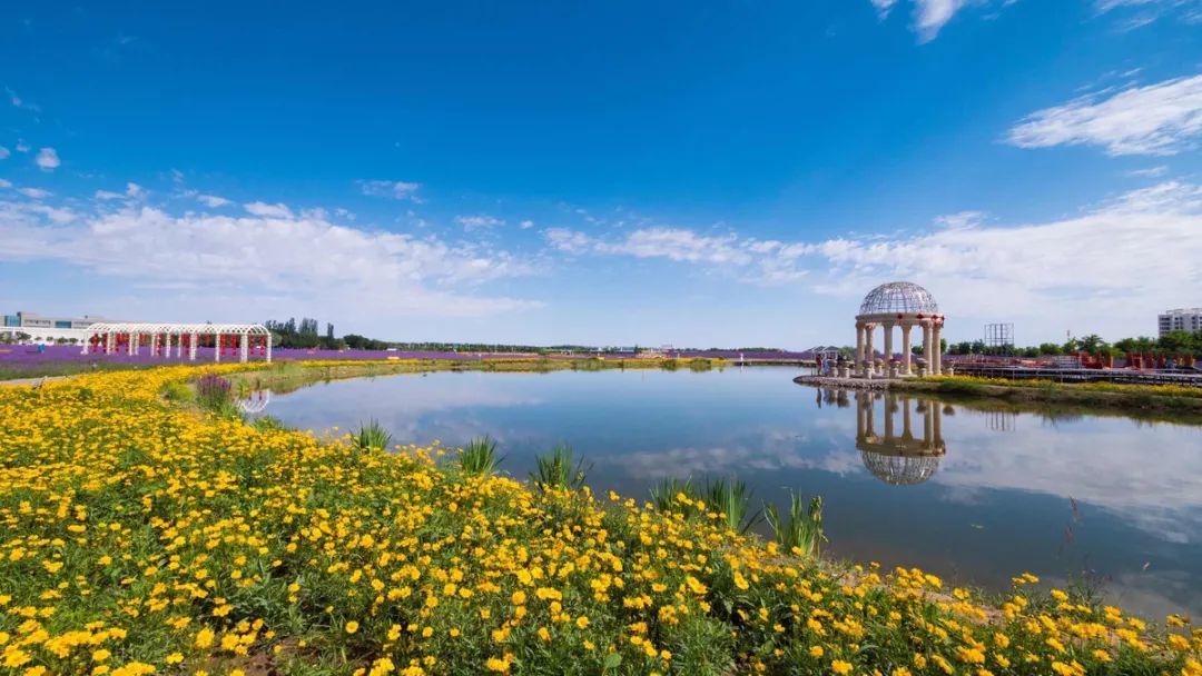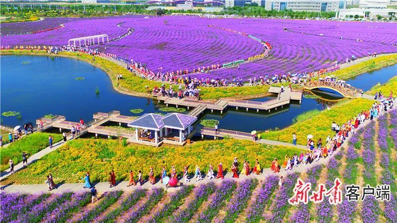 在戈壁滩上建起了罕见的田园花海,