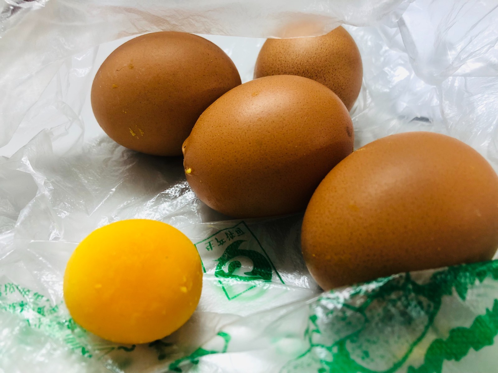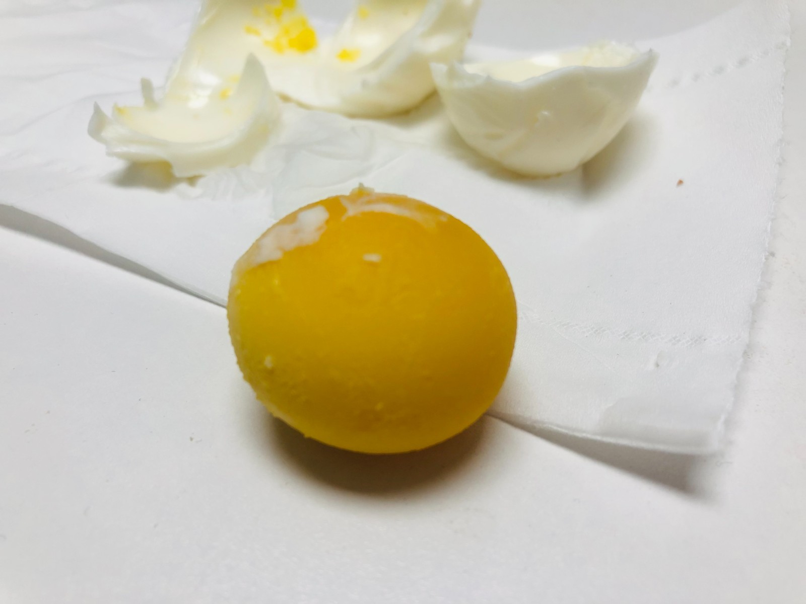 12月5日上午,记者见到了他所购买的“假鸡蛋”,现场他给记者剥开一枚煮熟的鸡蛋,蛋清和蛋黄外形上与其他鸡蛋无异,但将蛋黄抛至空中,掉到桌面上会再次弹起,弹起高度达20至30厘米,蛋黄却完好无损。
